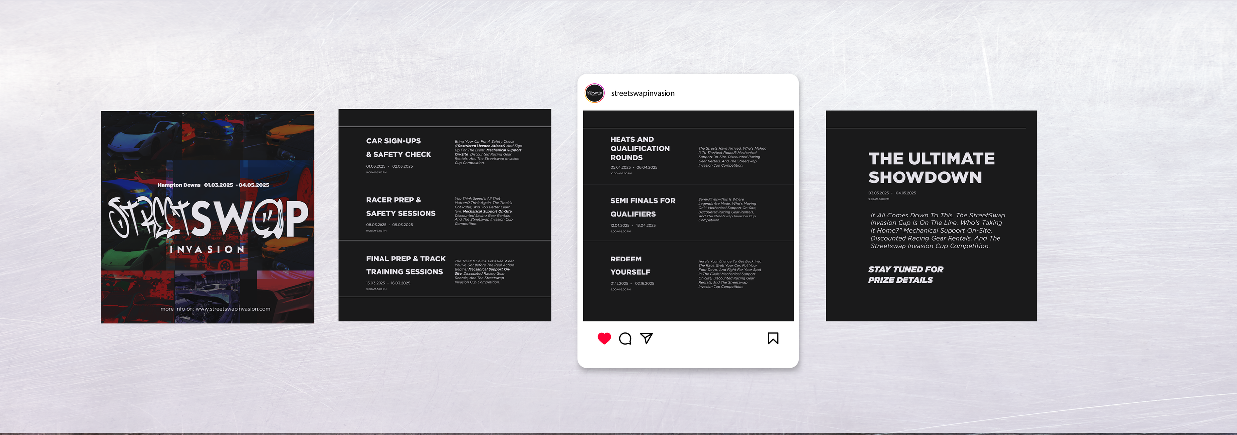 StreetSwap Invasion Social Media Event Promotion boldly showcases vibrant cars and striking colors, allowing them to take center stage. This visually captivating teaser aims to grab attention and generate excitement for the upcoming event, inviting car enthusiasts to join in and experience the thrill.